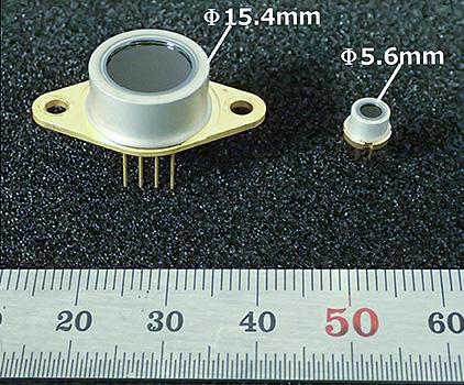 波长4~20μm的中红外带宽领域内,以单模形式连续输出的DFB-QCL作为小型高速的传感检测用光源,在大气污染气体、温室效应气体、有毒气体等的高灵敏度实时测量,以及呼吸气分析和血糖值测量等医疗诊断领域的应用备受期待。但是,以往的DFB-QCL,由于元件本身的耗电量过大(>5W),驱动激光器时产生大量热能损耗,必须采用散热效果高、大尺寸、高价格的HHL封装*2。