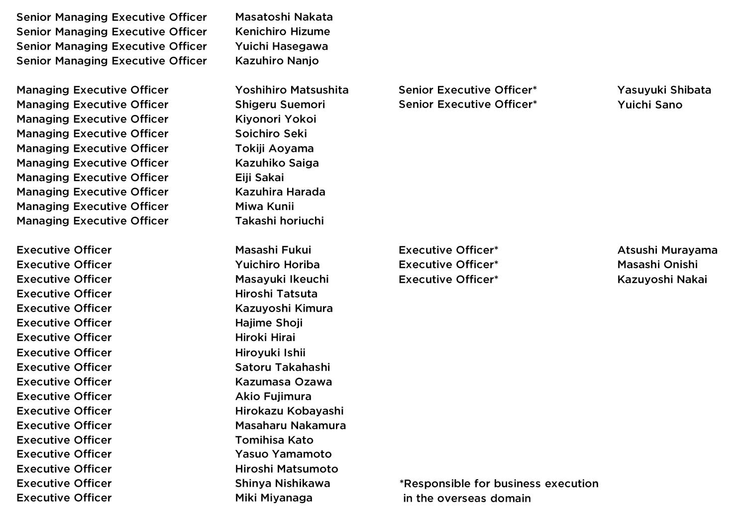 Hideo Hato General Manager, New Business Development Unit Deputy General Manager, Automotive Business Unit (Systems & Electronics Division) Corporate Staff Group (Legal, Public Relations, Information Systems, Corporate Planning, Intellectual Property, Security Trade Control) |