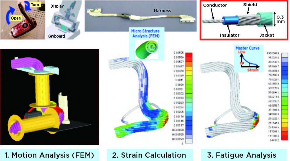 自動車のワイヤーハーネスやロボットの可動部に配策される電線の動き・軌道をX線CTとAIの活用により自動で読み取り、計算機シミュレーションに組み込むことで、高精度で断線寿命を予測可能にする技術を開発しています。